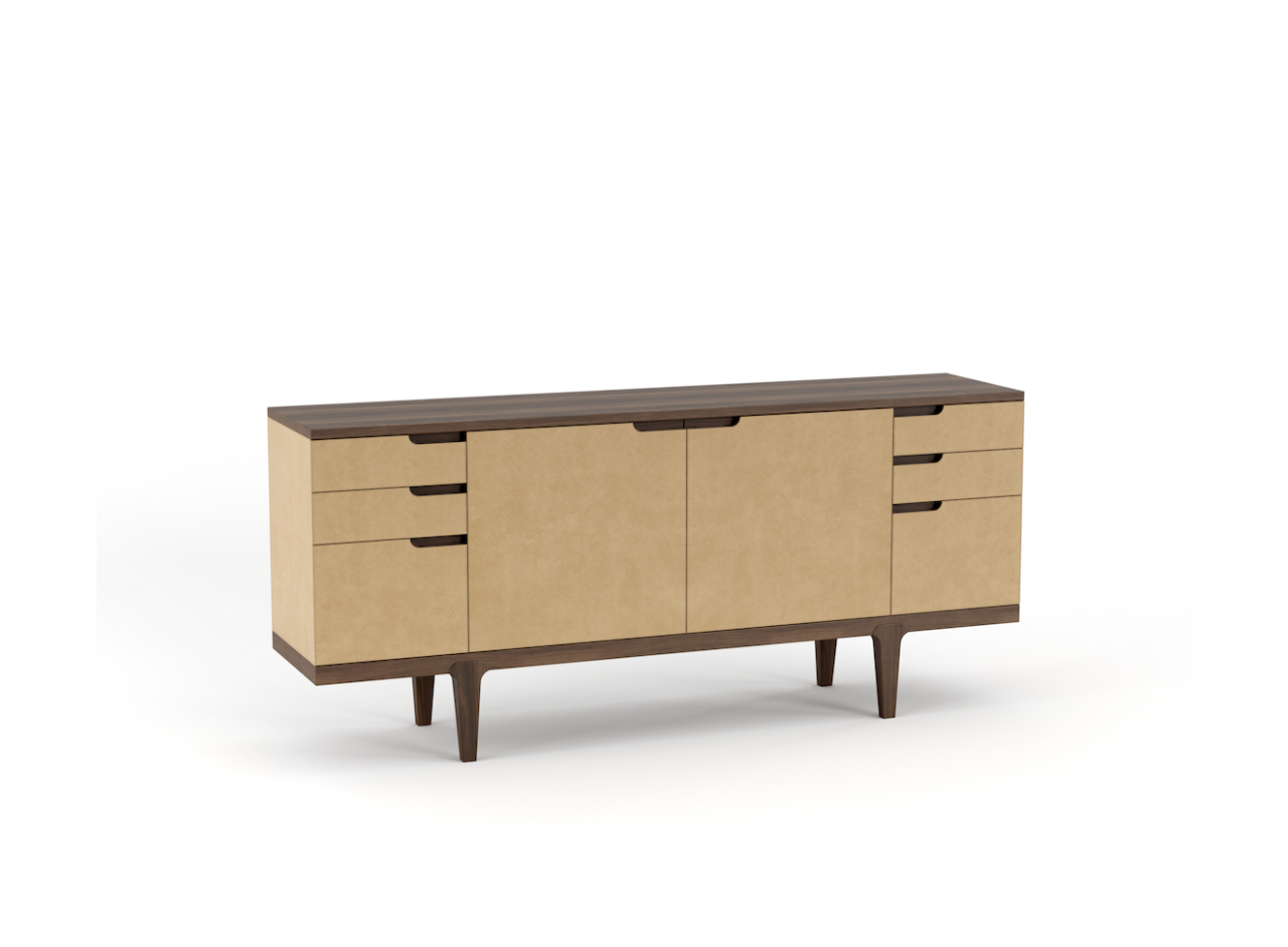 Изготавливается из массивов - ясеня, дуба и ореха. Отделка - натуральная кожа. Размеры 2000х450x890 мм