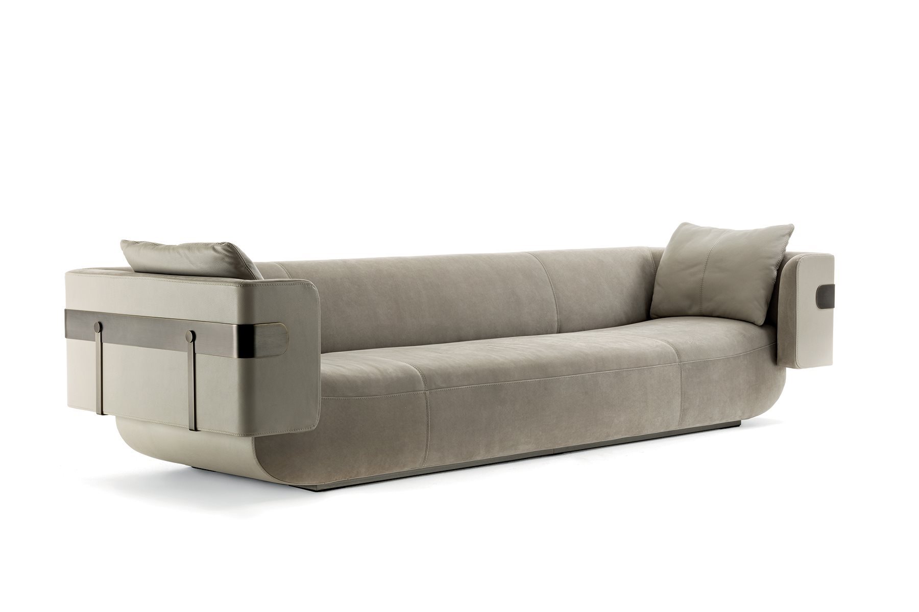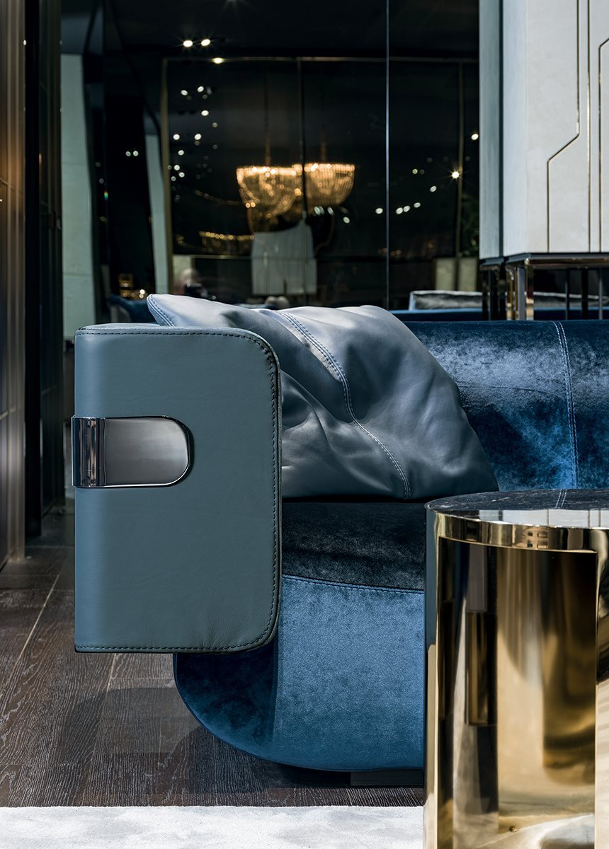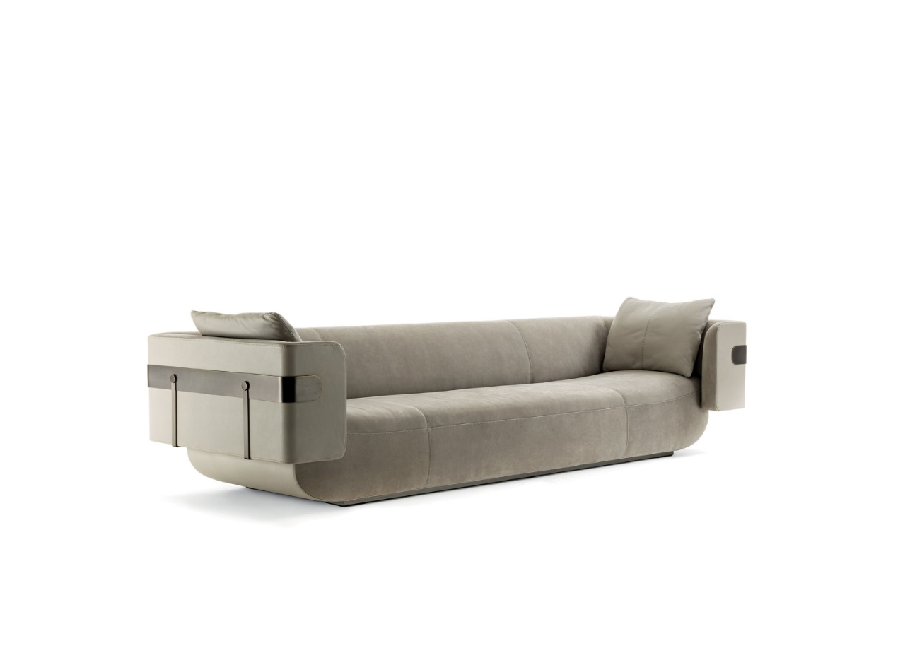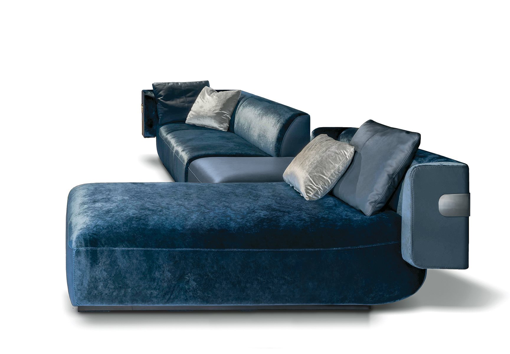 Longhi Угловой журнальный столик в коллекции MI имеет деревянную раму, покрытую тонким слоем пенополиуретана, внешняя сторона покрыта в цвете с диваном, а внутренняя панель доступна в различных вариантах отделки: - металл в гальванической отделке, согласованной с диваном, - бронзовое или дымчатое зеркало, - покрыто кожа согласуется с диваном или в других образцовых шкурах. Столешница журнального столика выполнена из мрамора образца или из оникса или Патагонского мрамора с подсветкой.