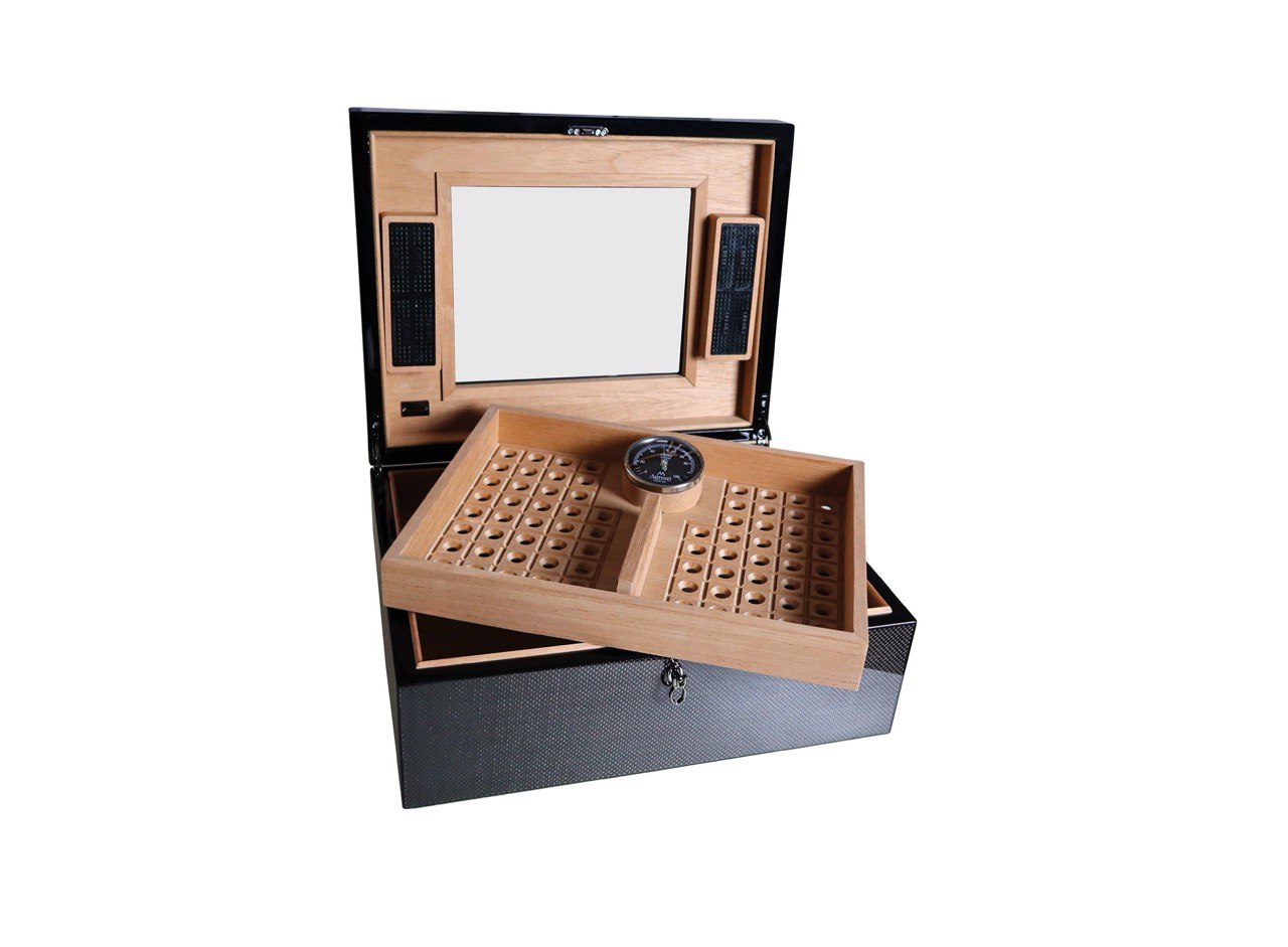 Хьюмидор на 100 сигар. Внутри кедр премиум класса. Два увлажнителя и гигрометр немецкого производства. Съемный поднос с гравированной текстурой. Закрывается замком с рутениевым покрытием. РАЗМЕРЫ ИЗДЕЛИЯ cm. 38x30x16