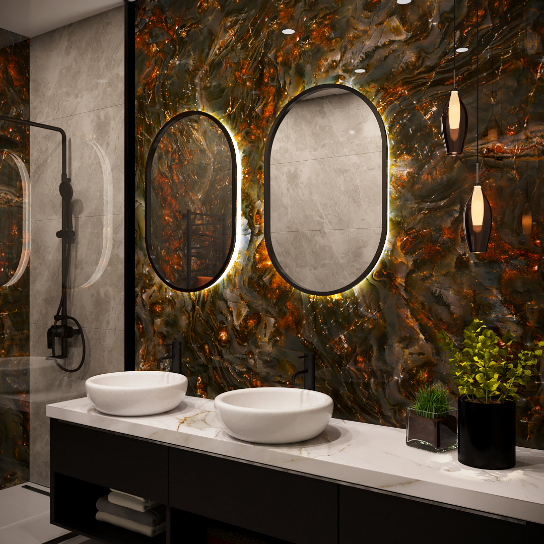 Листовой материал крупного формата, который представляет собой алюминиево-композитную панель с нанесенным на нее декоративным слоем и защитным покрытием. Толщина всей панели 4 мм. Стандартные размеры арт-панелей: 1200 х 2000 мм 1200 х 3000 мм Стандартные размеры арт-панелей для кухни: 2000 х 600 мм 3000 х 600 мм Преимущества Дизайн Более 250 высококачественных декоров, все разработки авторские Насыщенная цветопередача Термостойкость Устойчивость к перепадам температур Минимальные швы Нитевидный стык полотен Легкость Малый вес панели - 7,5 кг/м2. Гибкость Возможность фрезеровки, сгиба на внутренний и наружный угол 90°, радиусные поверхности. Есть технические ограничения. Влагостойкость Применение в любых мокрых и влажных внутренних помещениях. Российское производство Сертификат предприятия ISO 9001. Экологичность Используемые материалы не токсичны