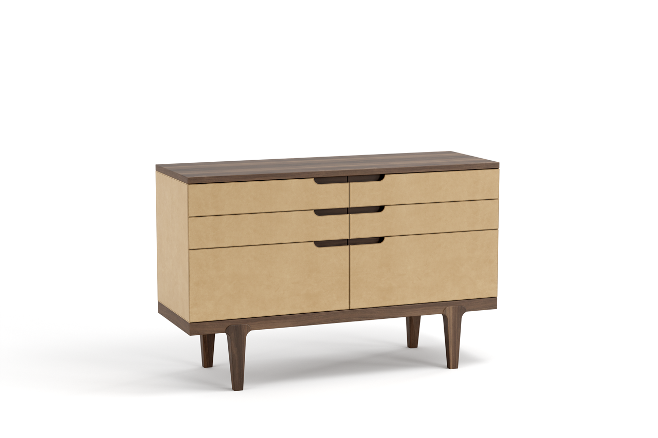 Комод (A) VINTAGE 1300х450x890 Обивка - натуральная кожа в трех цветах, массив - орех, дуб или ясень Коллекция VINTAGE Эргономичность в сочетании с простотой и скульптурность силуэтов. Кожаные элементы напоминают сложенные из крупных блоков фасады модернистских зданий. Внимание к деталям, органичное соответствие окружающему пространству и неуловимое настроение «безвременья».