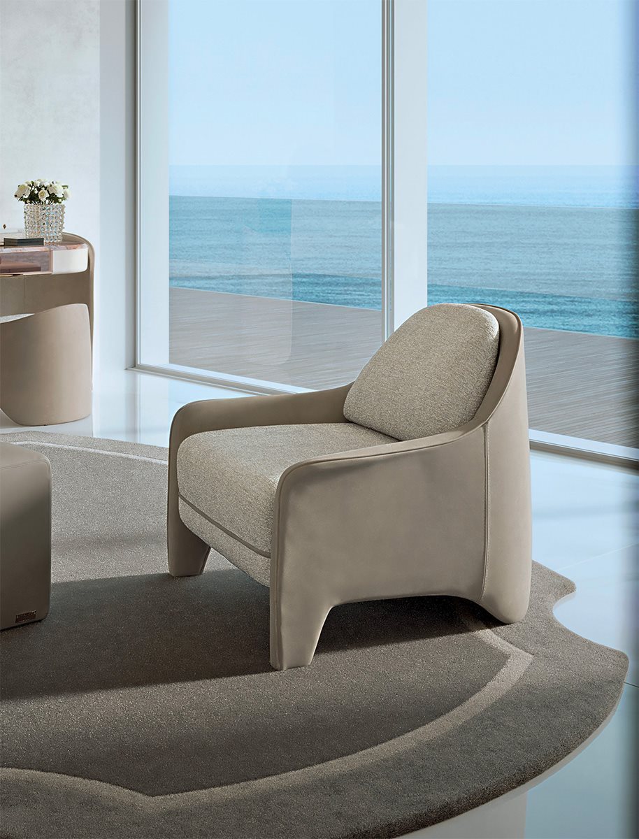 Longhi Кресло Nora состоит из внешней оболочки, обитой кожей, уютной формы, которая охватывает мягкую подушку сиденья и спинки. Он гармонично интегрируется в н спальню, но может быть размещено в любой обстановке, придавая стиль и элегантность.