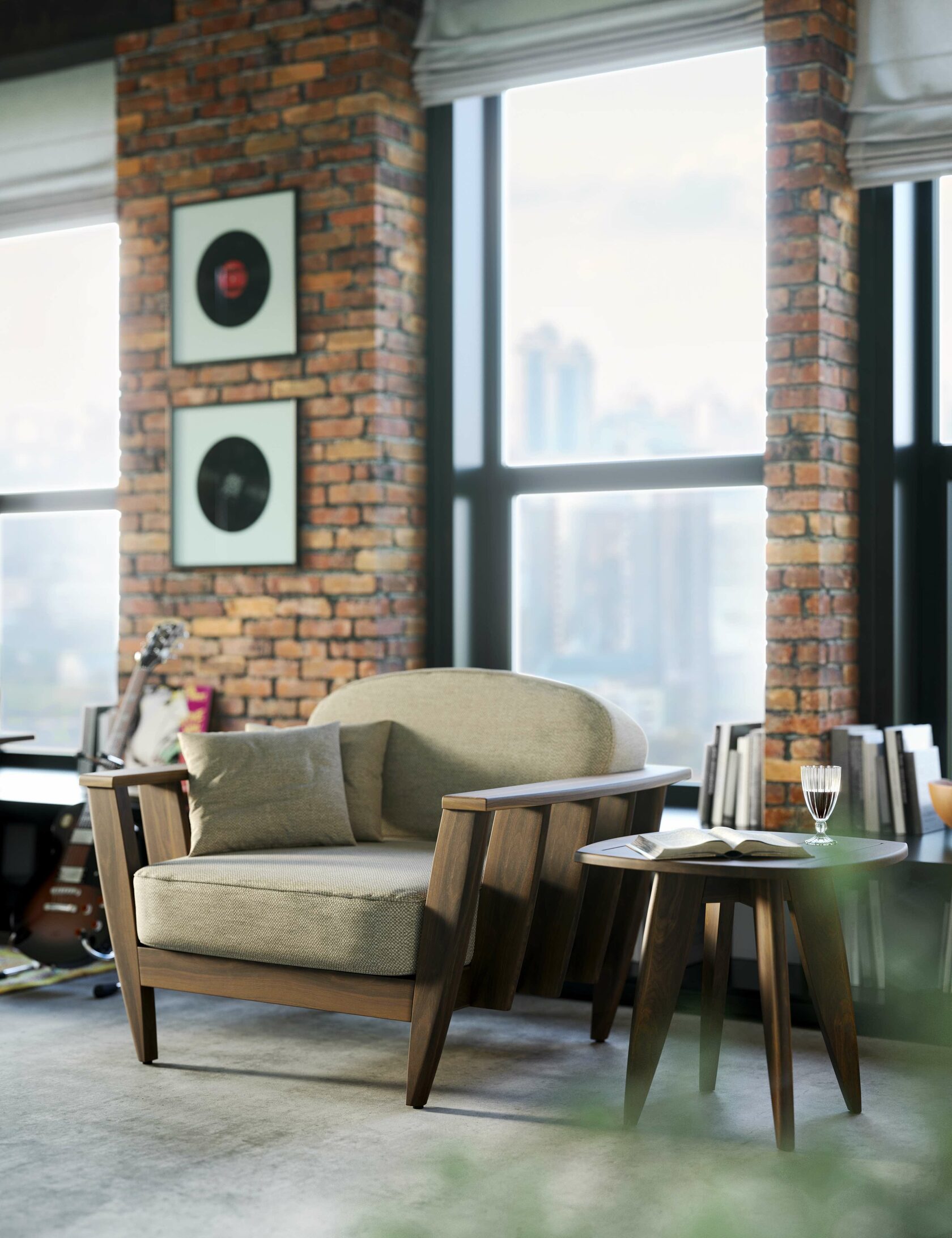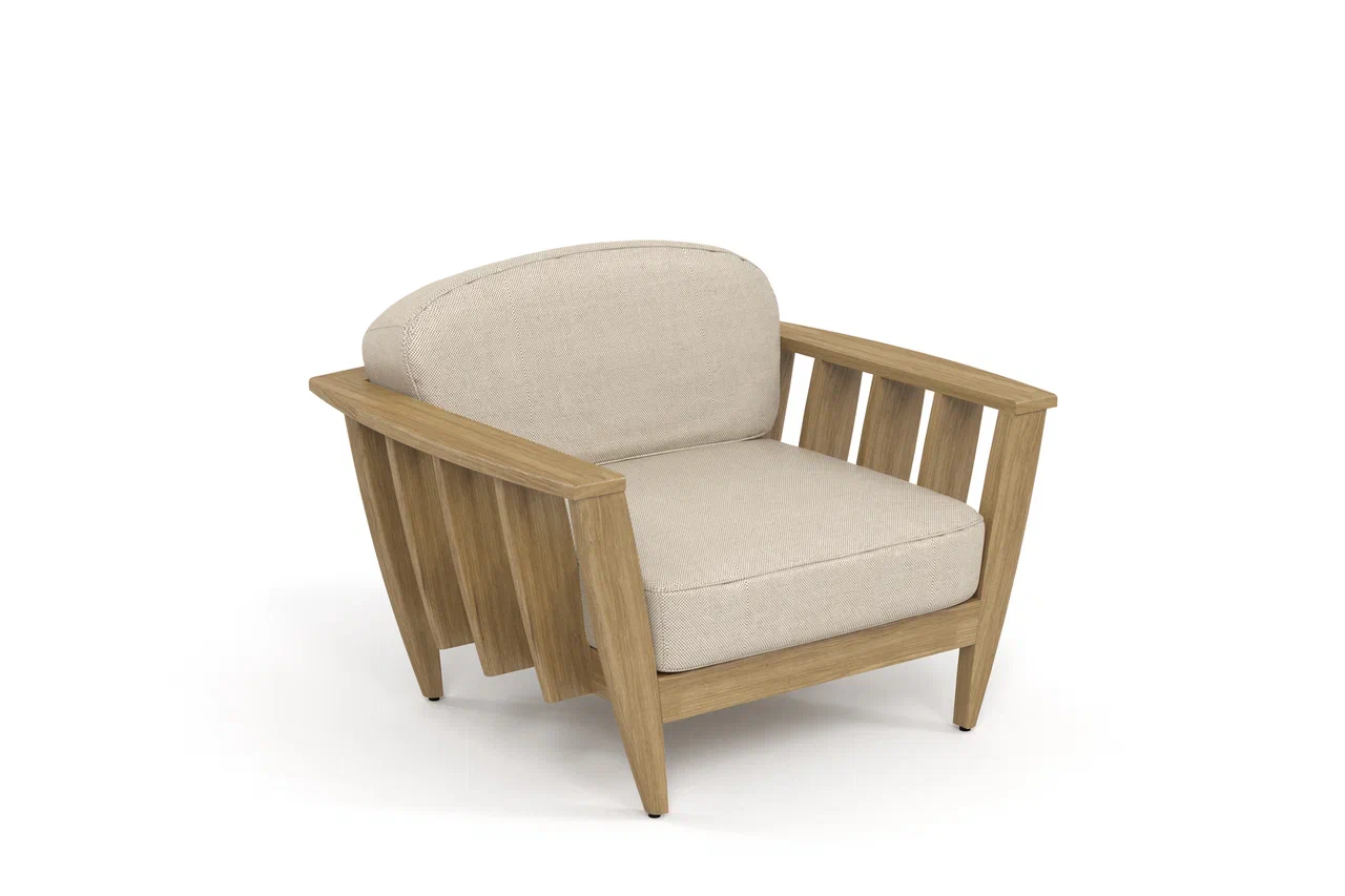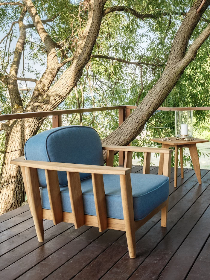 Уникальный дизайн, сочетающий надежность, теплоту дерева и продуманность форм. Мягкие удобные подушки привлекают внимание к уютному уголку отдыха. Коллекция универсальна: ищете ли вы уединение у камина, смотрите на залитые закатным солнцем крыши домов далеко внизу или заснеженные ветви в саду за окном, предметы этой коллекции будут вашими компаньонами независимо от времени года и настроения. Вкус и стиль дома, в который хочется возвращаться. Может быть выполнена из древесины для улицы - ироко, тик или акция, или из древесины для дома - орех или акация. Габариты мм: В795 х Ш1112 x Г955.