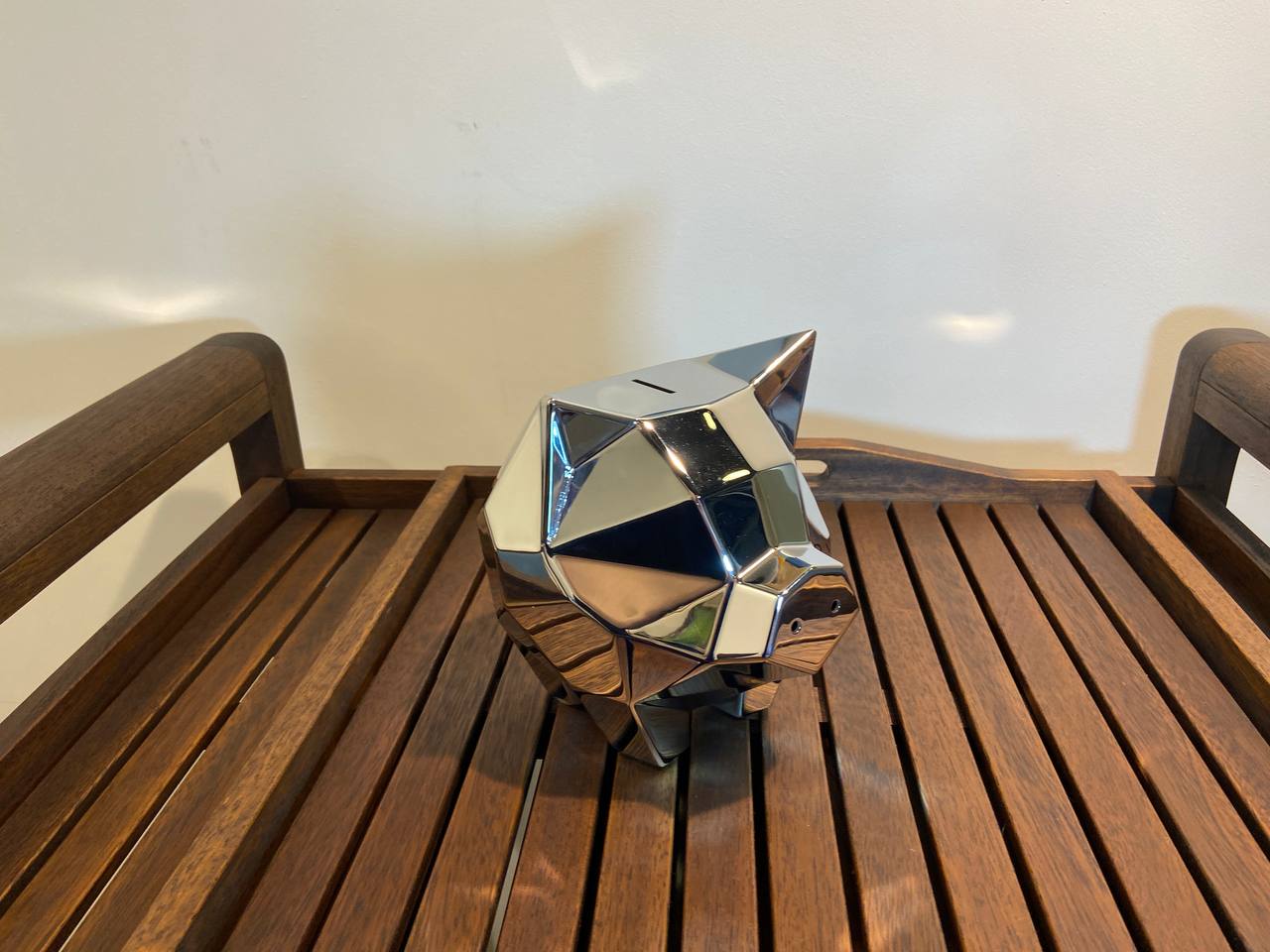 Полигональная скульптура «Свинка - копилка», нержавеющая сталь, полированная. Размер 20 x 20 x 18 см. Доступны к заказу варианты исполнения: Углеродистая сталь в любом цвете по RAL Нержавеющая сталь полированная золото Возможно изменение размеров в индивидуальном заказе.