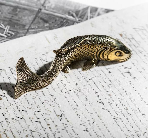 Пресс-папье карпа из латуни, коллекция OCEAN, станет замечательным дополнением к серверовке Вашего стола. Океан.. Неповторимый, глубокий, завораживающий. Источник жизни и вдохновения, дарящий спокойствие и будоражащий чувства – перед вами коллекция пресс-папье из латуни ручной работы. Мягкий блеск, выразительность строгих линий и неуловимая переменчивость жизни. В коллекции нашла отражение сама природа в ее пленительной и вечной красоте.