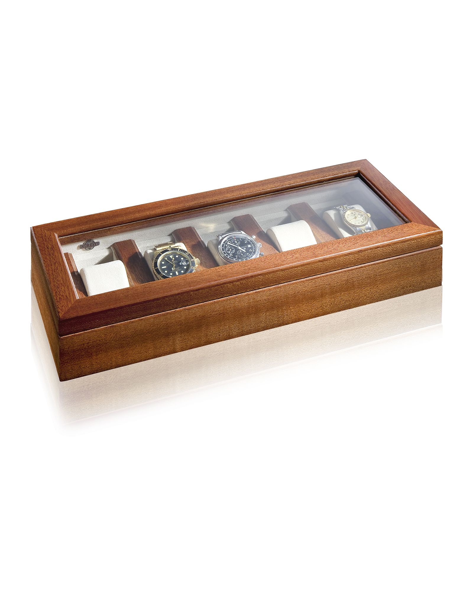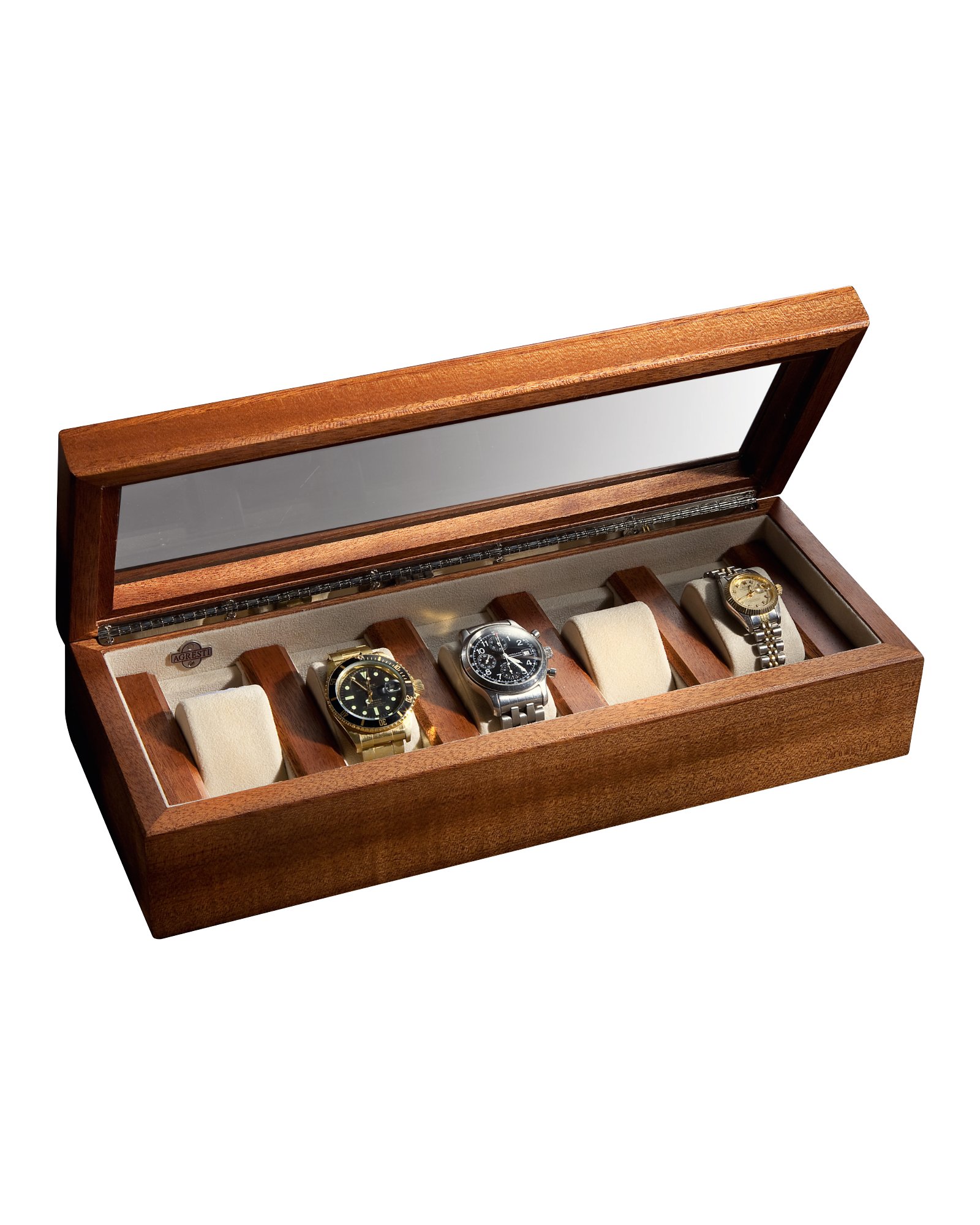 Шкатулка из красного дерева для хранения 5 часов, с внутренней отделкой из защитной ультразамши.Петли из рутения. РАЗМЕРЫ ИЗДЕЛИЯ cm. 36,2x13,8x8,6