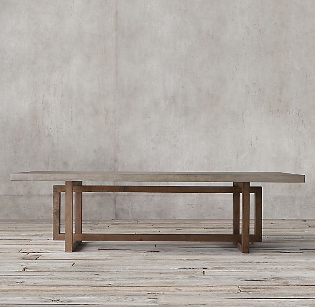 Столешница из полированного бетона установлена на массивном основании из африканского ироко Материалы: Массив тропического ироко Покрытие: тиковое масло/микробетон Размеры: Ш2400 Г1000 В750