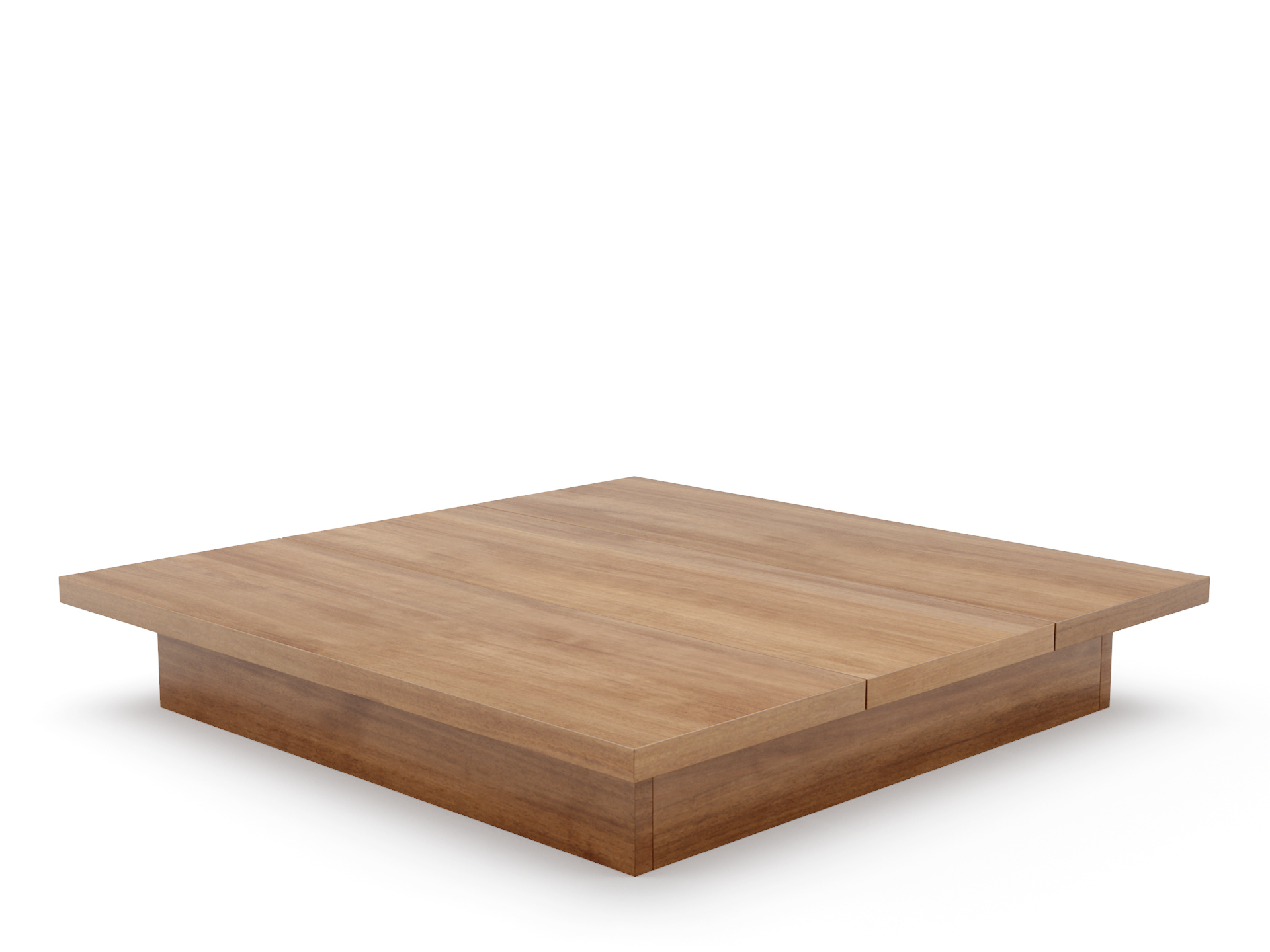 Материалы: Массив тропического ироко Покрытие: тиковое масло Цвет: Натуральный Венге Размеры: Ш1200 Г1200 В200