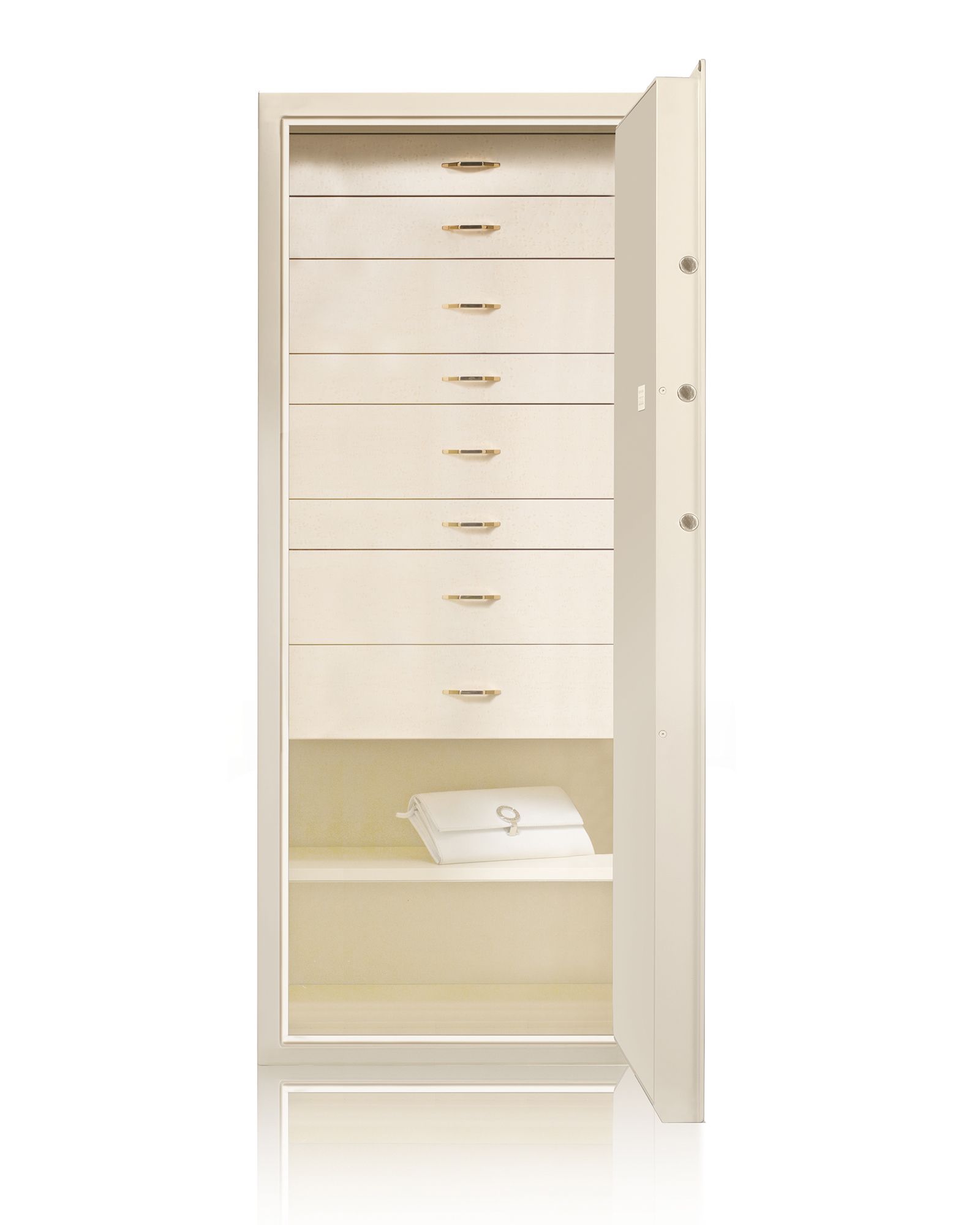 Металлический сейф, окрашен только фронтально, для встраивания в уже существующую мебель. Цифровой замок и система аварийного открытия. Сейф крепится к стене стальными шурупами. Возможно вставить механизмы швейцарского производства для подзарядки автоматических часов. РАЗМЕРЫ ИЗДЕЛИЯ cm. 46x33,5x108